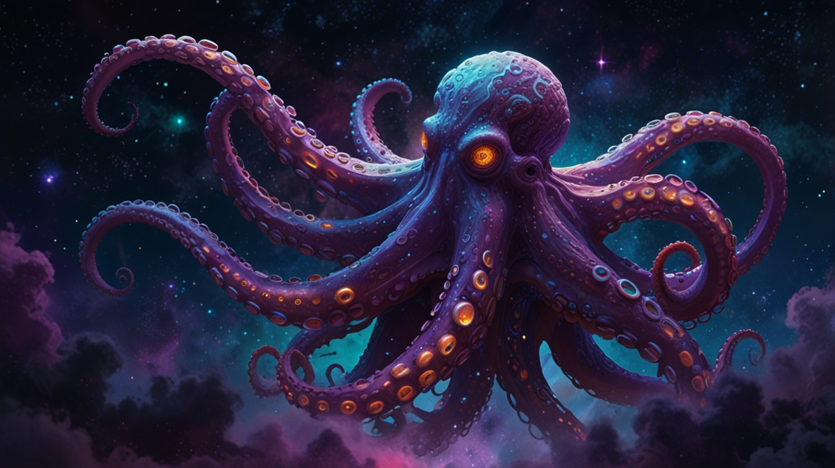 The Creator is usually depicted as a cosmic octopus with eight tentacles.